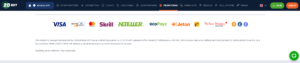 Los depósitos también se pueden realizar utilizando Jetson, eZeeWallet, ecoPays o mediante el uso de criptomonedas. Sin embargo, es importante tener en cuenta que el tiempo de procesamiento de una transacción realizada con una tarjeta de pago o una transferencia bancaria puede tardar hasta cinco días.